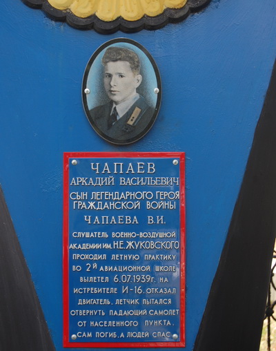 А через полгода… 7 июля 1939 года несчастье произошло и с Аркадием Чапаевым. В ту пору он находился в Борисоглебске. Как слушатель Военно-воздушной академии имени Жуковского проходил летнюю практику в здешней авиационной школе, которую в свое время окончил его покойный друг и наставник Валерий Чкалов и которая уже тогда была удостоена права называться именем советского аса.