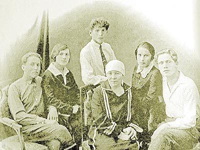 – У нас, к сожалению, мало документов, касающихся собственно Аркадия. Вот есть его летные очки, шлем, кое-какие личные вещи. Да он и прожил-то совсем ничего. И не успел обзавестись наградами, мемуарами. Самое ценное у нас – это фотографии Аркадия. На одной он изображен с братом Александром и сестрой Клавдией. Это фото 1922 года. На другой он с женой Зоей Ивановной в 1937 году.