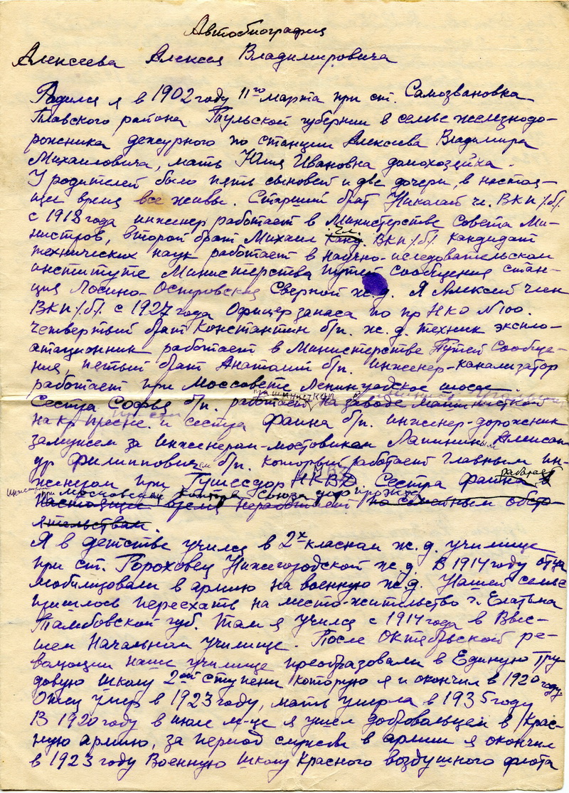 Информация для сайта прелоставлена Алексеевым Юрием Алексеевичем, сыном Алексеева А. В.