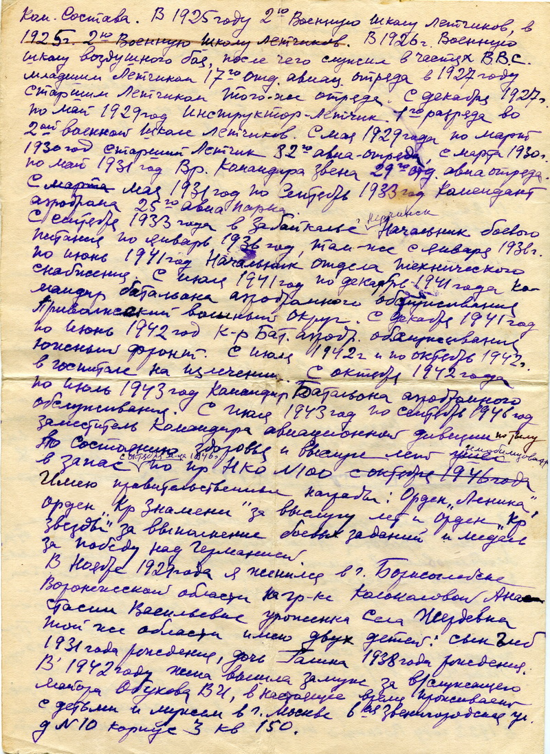 В 1926 году окончил Военную школу воздушного боя, г. Серпухов.