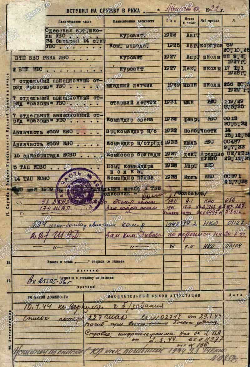 5 июля 1929 г. окончил Борисоглебскую ВШЛ по линии "Разведчики"(1 и 2 учебные эскадрильи).