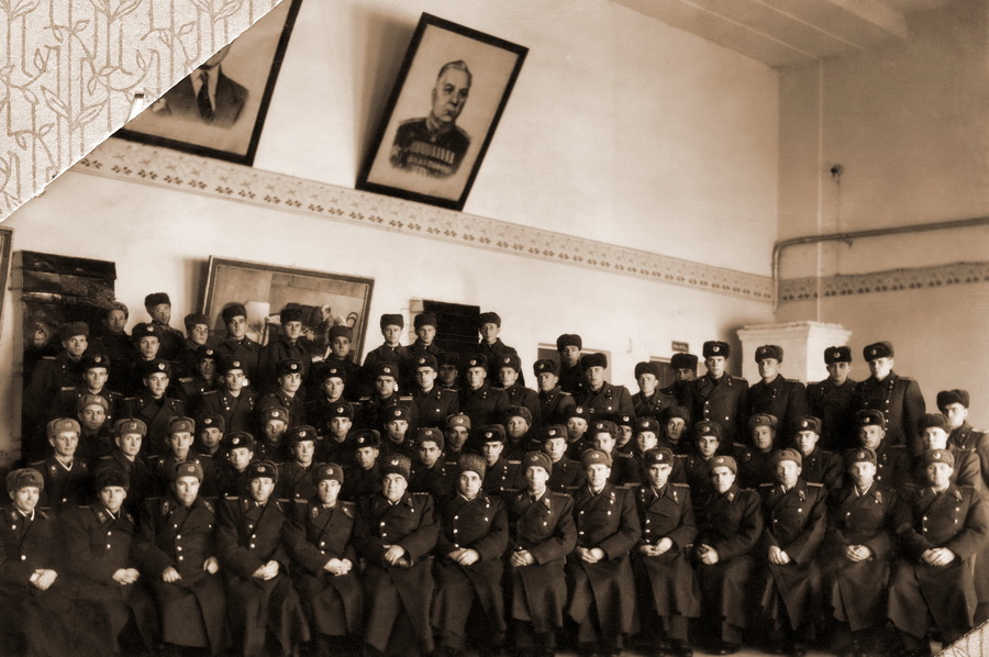 Конец 1953 года. Курдубов Ф.Г. и руководящий состав училища с выпускниками 115-го военного авиационного училища лётчиков ВВС (до февраля 1953 года - военная авиационная планерная школа пилотов ВДА (воздушно-десантной армии). Город Славгород Алтайского края.