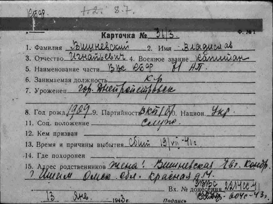 Капитан военно-морской авиации Балтийского флота ВИШНЕВСКИЙ Владислав Игнатьевич родился 22 сентября 1909 г. в г. Екатеринослав (ныне Днепропетровск) в семье крестьян, поляков Игнатия Ивановича и Юлии Антониевны (в девичестве Пешинской).