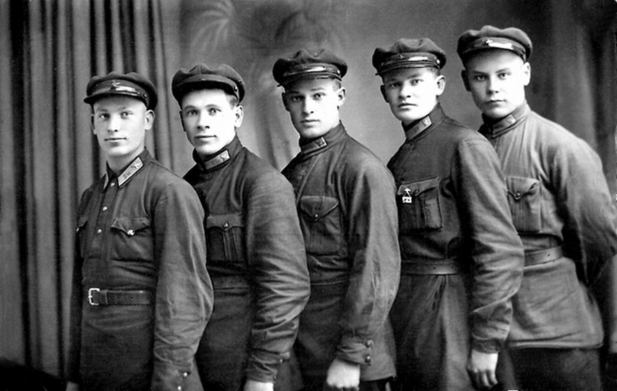 Молодые лётчики. Слева направо: Яков, Виктор, Александр, Владислав Вишневский, Леонид.