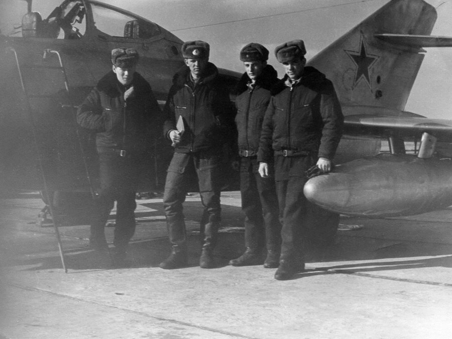 Слева направо: курсант Соколан Володя, Поддубный А.А., курсанты Моисеев Александр, Кириллов Дмитрий (окончил училище с золотой медалью)