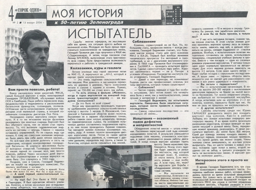 Провалов Геннадий Вадимович и по настоящее время (в марте 2013 года ему будет 75) является ведущим инженером Государственного центра безопасности полётов ГА (Шереметьево).