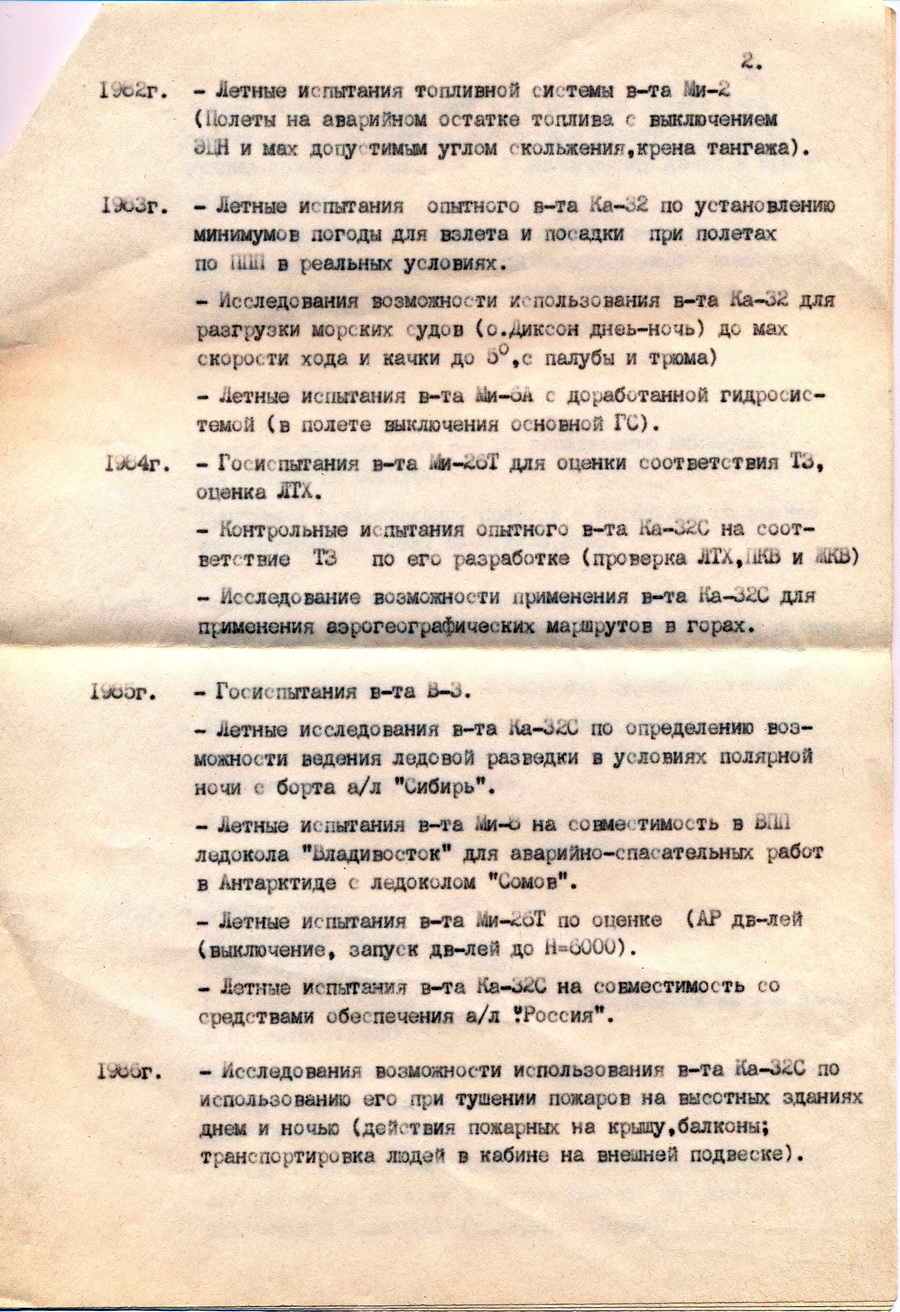 На период окончания лётной работы в 1993 году освоил все типы вертолётов, эксплуатируемых в ГА;