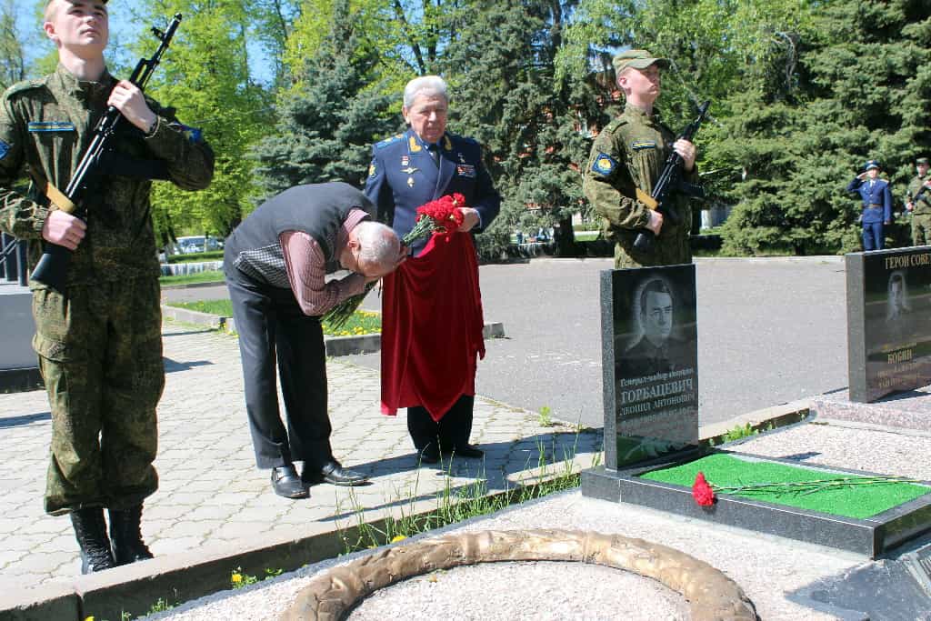 Почётное право открыть памятник предоставили Заслуженному военному лётчику СССР Герою России генералу армии Петру Степановичу Дейнекину и внуку - Станиславу Станиславовичу Горбацевичу.