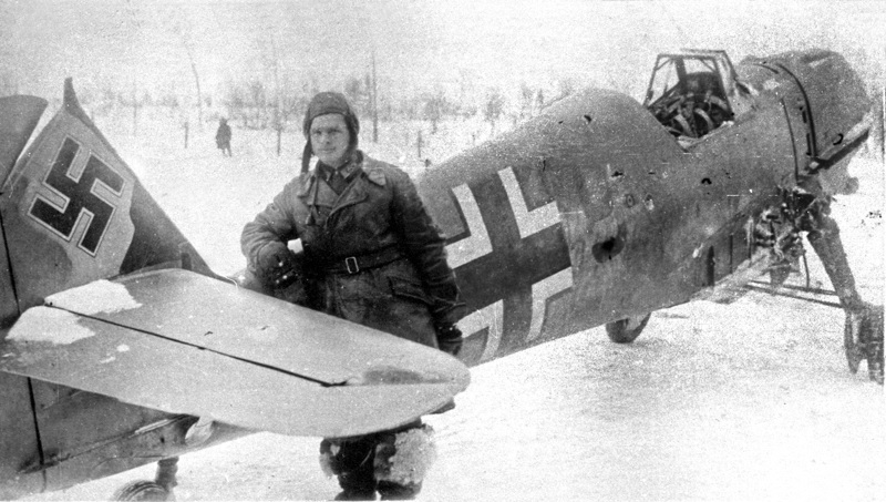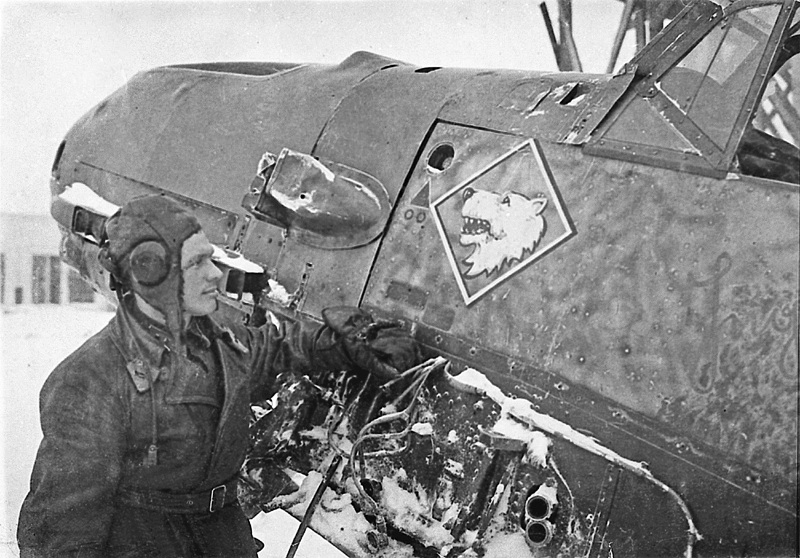 Ме-109 сбитый старшим лейтенантом Елисеевым в воздушном бою 26 февраля 1942 года в районе станции Кола, аэродром Мурмаши.
