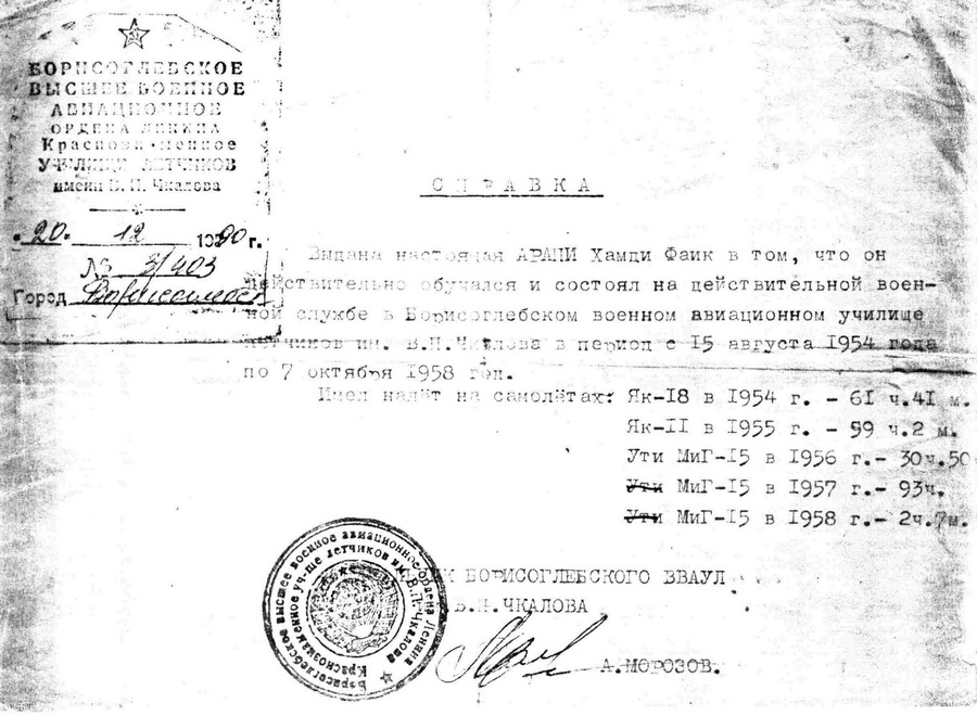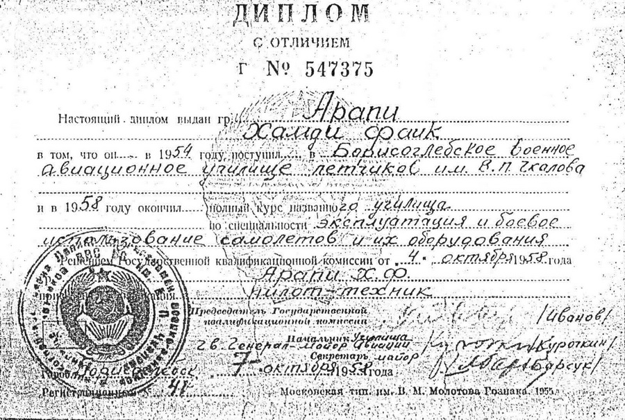 ...В 1954 г. в училище поступили 12 албанских курсантов, вернее их прислали на обучение. В итоге к выпуску в 1958 году подошли только три человека, остальные списаны по нелётке, здоровью и т.д.