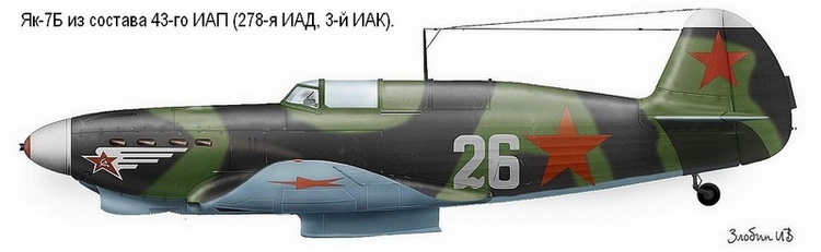 В период 25.12.1942–15.02.1943 лётчиками 43 иап освоены самолёты Як-7б в 19-м запасном иап Сибирского ВО (аэродроме Тарново под Новосибирском).