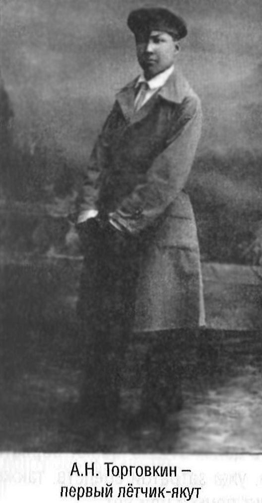 Тов. Алексей Торговкин был первым красвоенлётом из уроженцев Якутии. Он происходит из крестьян Кыллахского наслега, Олёкминского района. Собственным трудом пробивал себе путь к знаниям.