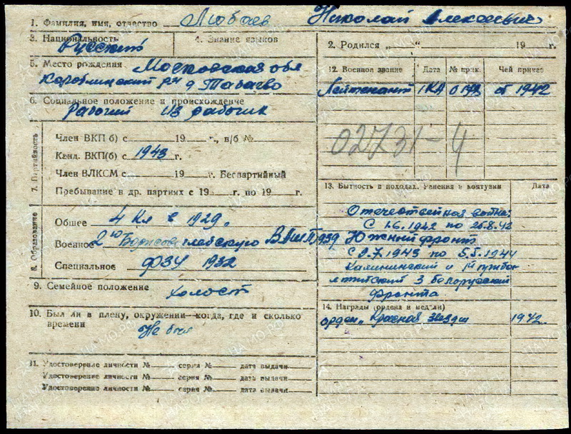 Последнее место службы - 761 иап 259 Городокской иад 3 ВА ВВС Калининского фронта. Командир звена, лейтенант.