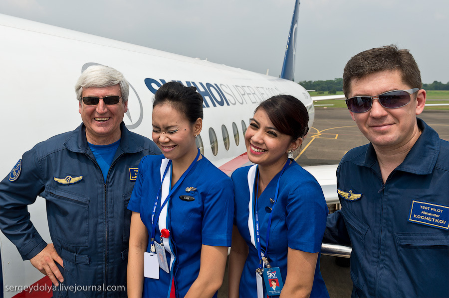 Самолётом управлял российский экипаж во главе со старшим лётчиком-испытателем Александром Яблонцевым. Второй пилот - лётчик-испытатель Александр Кочетков. На борту находились также штурман Олег Швецов, полётный инженер Алексей Киркин, ведущий инженер по лётным испытаниям Денис Рахимов, заместитель начальника лётно-испытательного центра комплекса ГСС Николай Мартыщенко, директор по продажам компании Евгений Гребенщиков и менеджер по контрактам Кристина Куржукова.