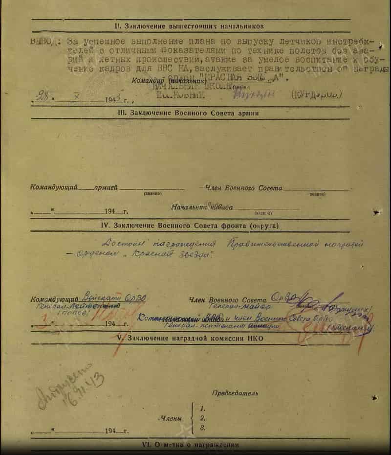 28.07.1943 командир звена Борисоглебской ВАШП лейтенант Бруснев В.И. представлен к награде: