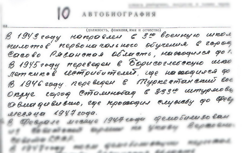 Обучался в Борисоглебской военной школе лётчиков-истребителей с 1945 по 1946 гг.