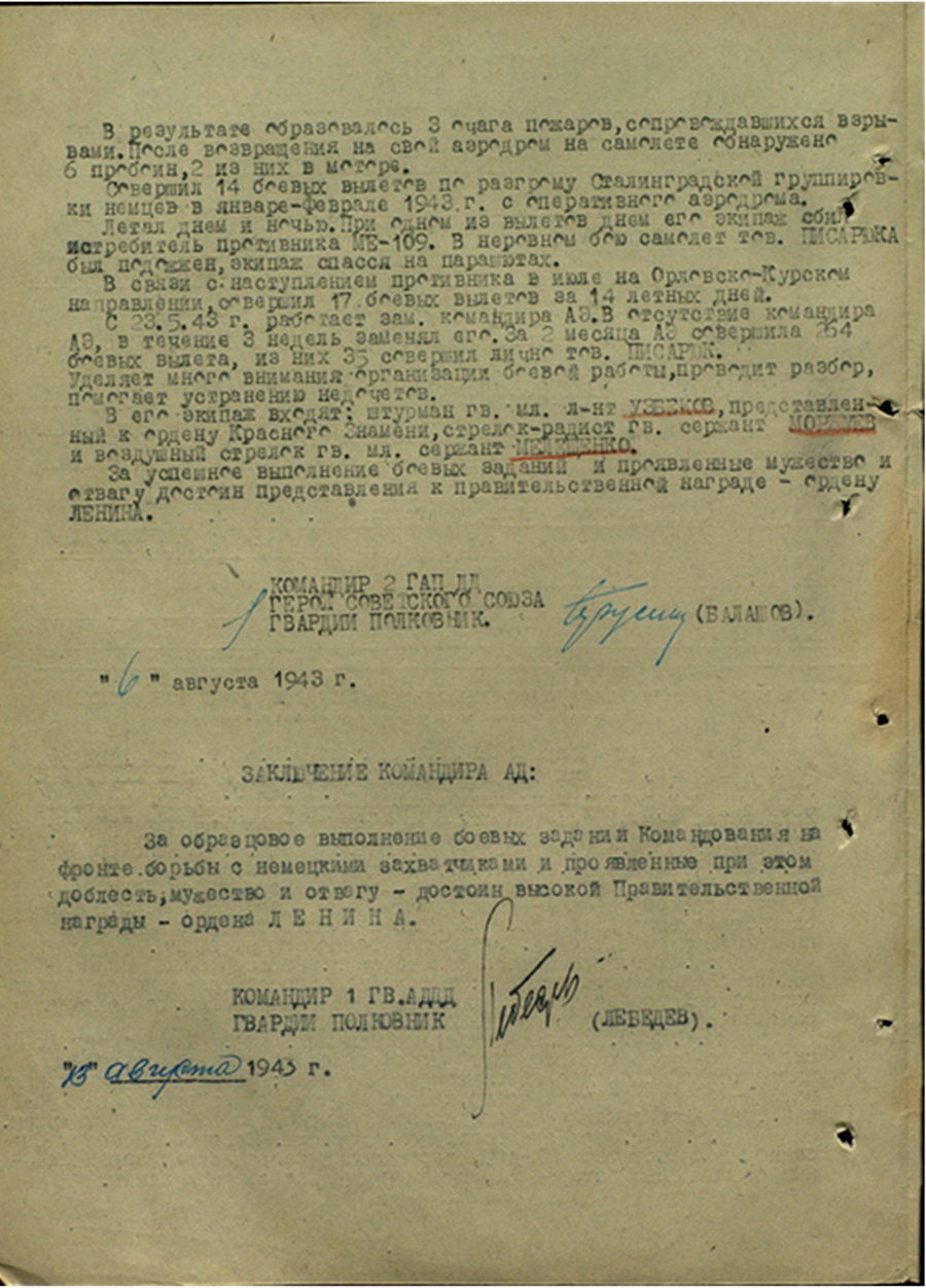 — Нашего полку прибыло, — шутливо встречают собравшиеся летчиков — Е. М. Гончарова, И. А. Седых, О. Д. Халмурадова, П. И. Шелудько, А. Е. Пастухова, И. В. Новикова, стрелков-радистов Л. К. Королева, Г. Г. Базилевского, П. Н. Наварнова, Н. Г. Петрова, М. И. Рогачева.