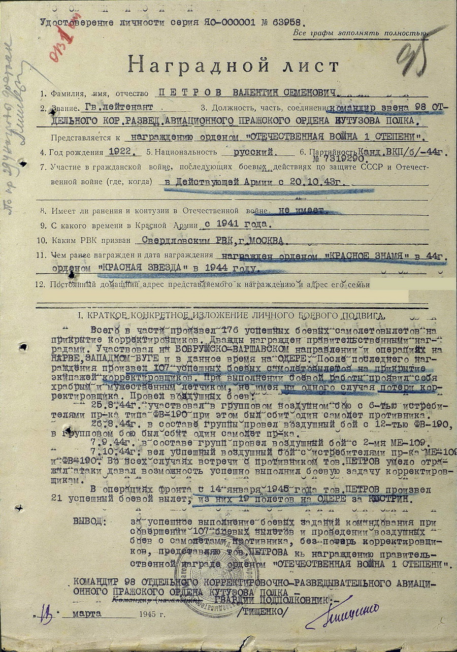 Сканы наградных документов из Общедоступного электронного банка документов "Подвиг народа":