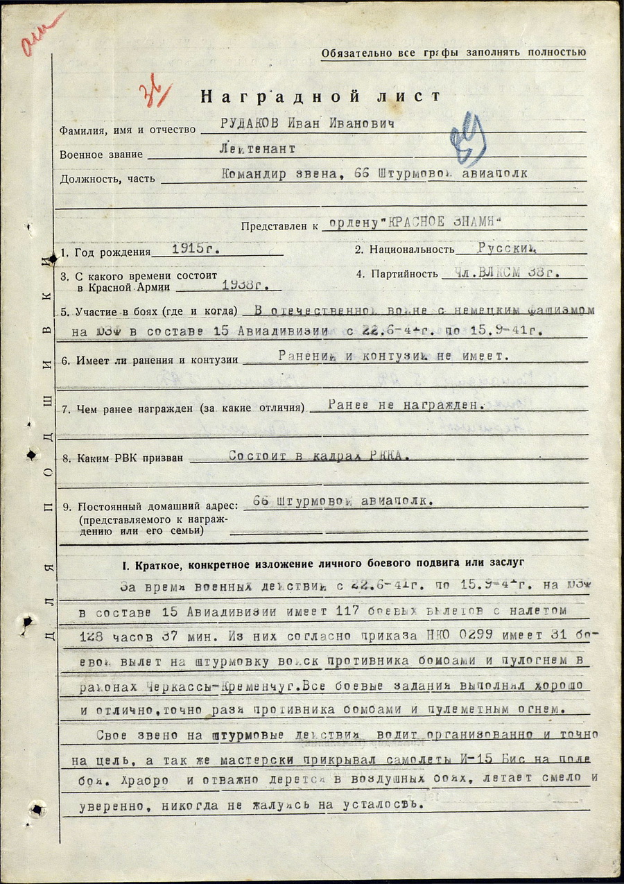 Информацию и фотографии предоставила Лебедева Тамара Сергеевна, племянница Рудакова И.И.
