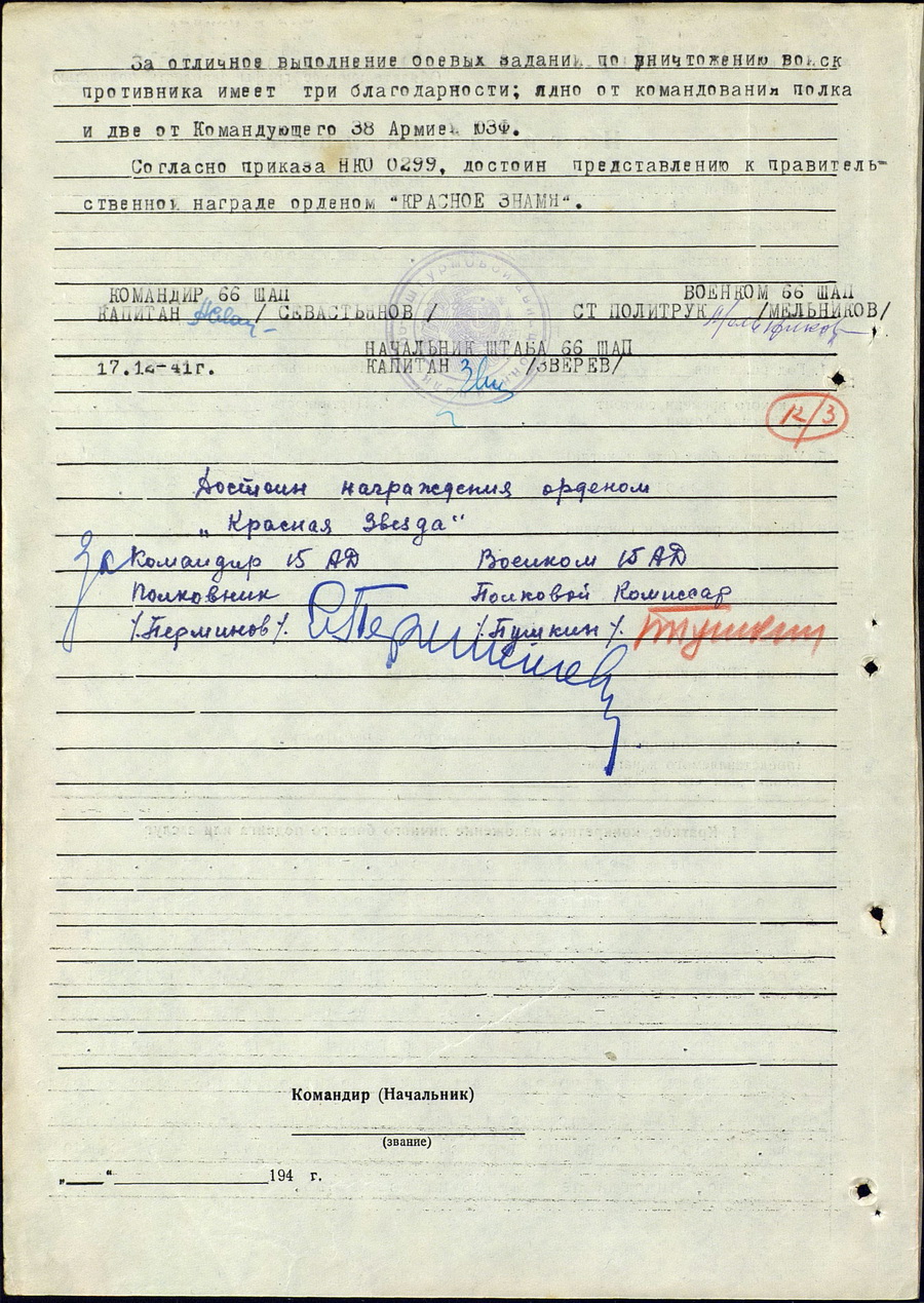 Награждён орденами Красной Звезды, Красного Знамени, Отечественной войны (посмертно).