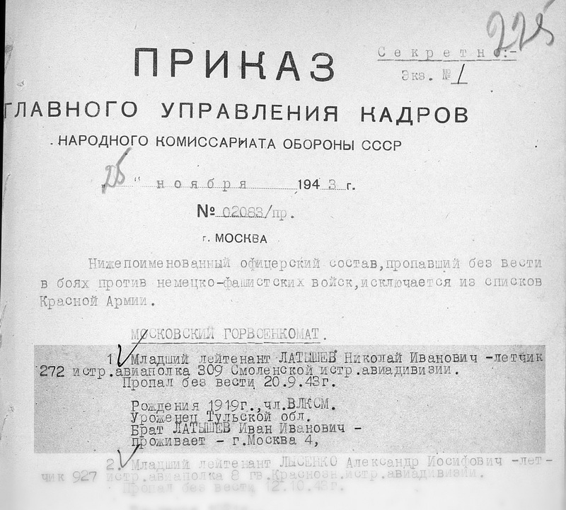 От Администратора сайта. В какой точно день августа родился Латышев Н.И. нам пока не известно. Помянем выпускника в тот день когда он со своими сверстниками отмечал День авиации - 18 августа.