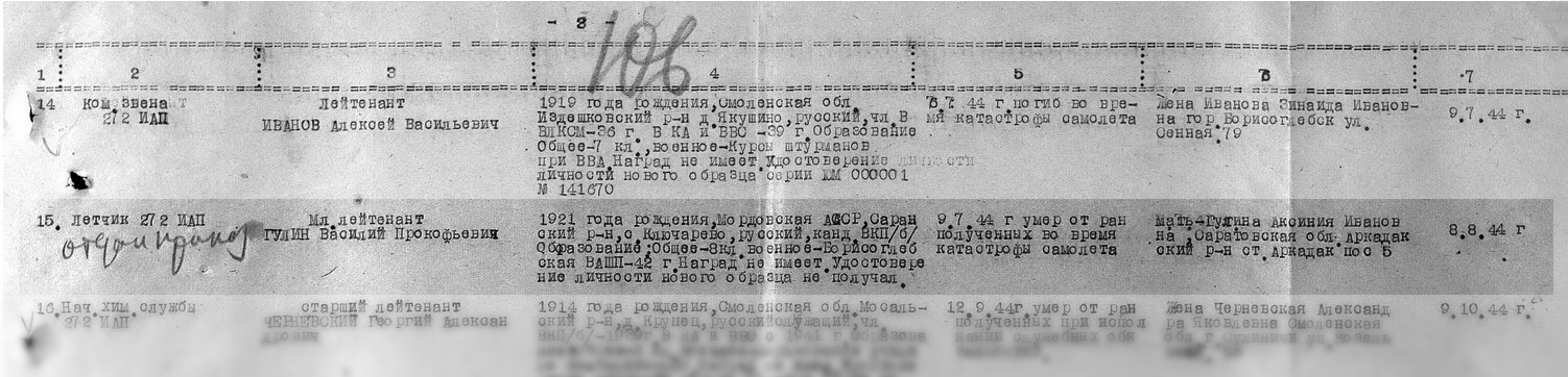 Последнее место службы: 272 иап 309 иад Западного фронта.