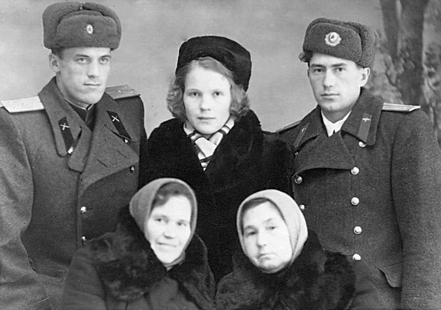 Виктор справа стоит, его мама Ульяна справа сидит.