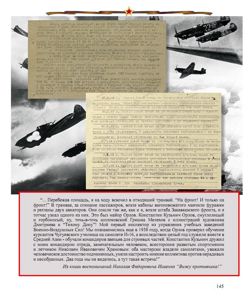 Фотографию и ссылку на книгу воспоминаний Н.Ф. Исаенко "Вижу противника!" с рассказом об Орлове прислала Екатерина Крапивина, г. Барнаул
