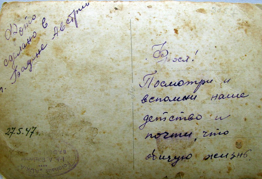 В Австрии они квартировали у какой-то фрау. Это была не молодая женщина. Она очень привязалась к светловолосому мальчику, которым тогда был мой отец. Сын этой женщины погиб на фронте. В доме осталось много его детских игрушек – маленькие танки, самолёты. Женщин даже показала фотографию сына – стоит рядом с автомобилем, в военной форме, рука поднята в нацистском приветствии. Он был водителем.