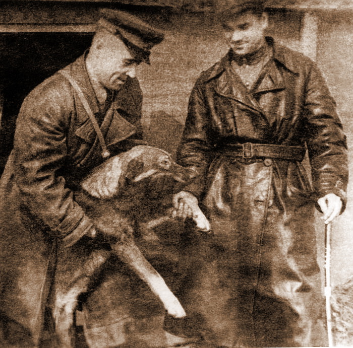 С собакой Василий Алексеевич Зайцев и его лучший друг Василий Иванович Соловьёв, который погиб 16 мая 1944 года...
