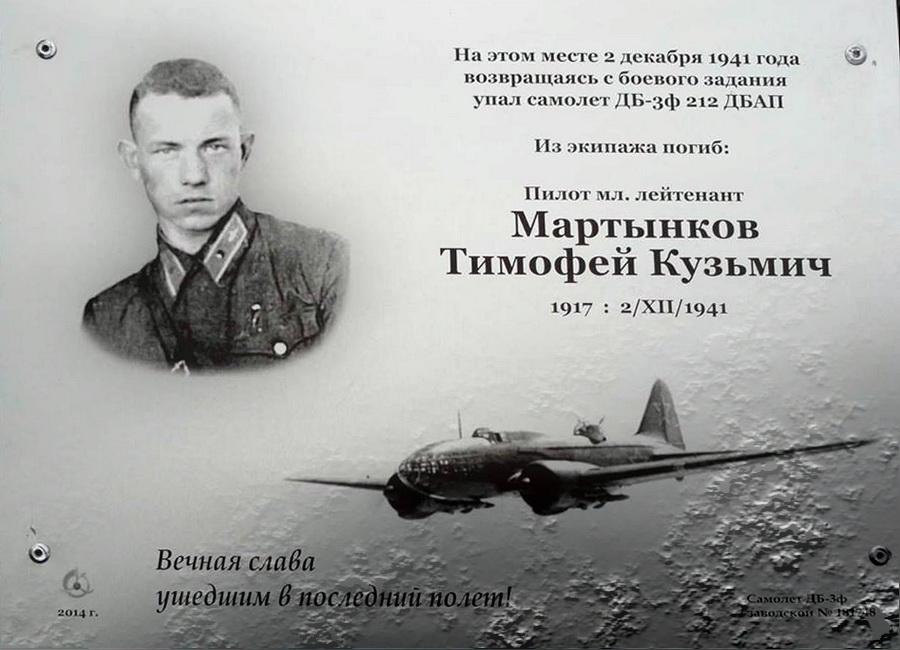 Пилот младший лейтенант Мартынков Тимофей Кузьмич (погиб).