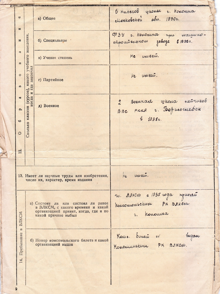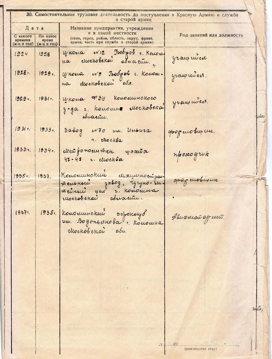 С 1937 по 1938 гг. работал авиамотористом в Коломенском аэроклубе им. Водопьянова.