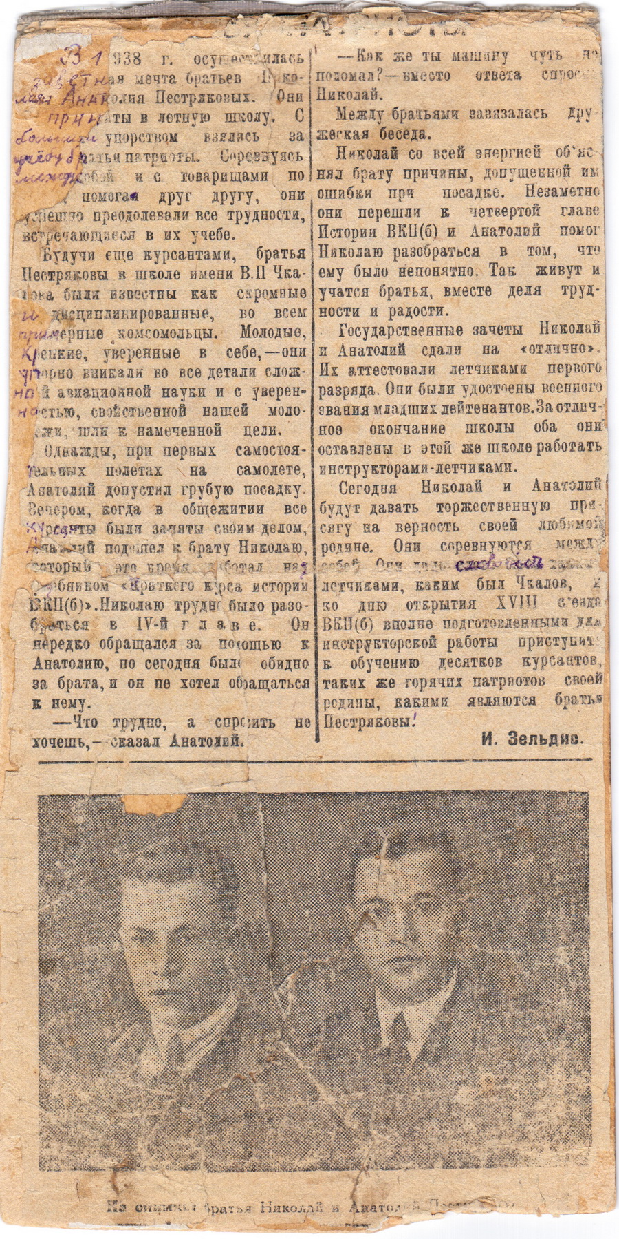Информацию о Пестрякове Н.А. предоставил правнук Андрей.