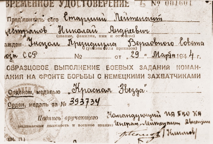 25.09.1944 направлен на Курсы усовершенствования офицерского состава истребительной авиации ПВО КА.