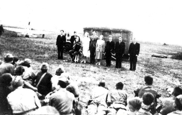Выступление артистов на летном поле аэродрома в Липицах. Лето-осень 1941 года.