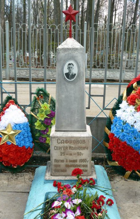 В результате несогласованности советских ракетчиков (новые зенитные комплексы недавно поступили на вооружение) самолёт Сафронова, шедший на высоте 11.000 м был принят за U-2 и поражён ракетой ЗРК С-75. Сергей Сафронов получил смертельные ранения. Пилот второго истребителя ведущий пары Айвазян резко спикировал вниз, и благодаря этому ему удалось выжить.