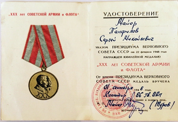 Майор Панфилов Сергей Михайлович погиб 23 сентября 1948 года.