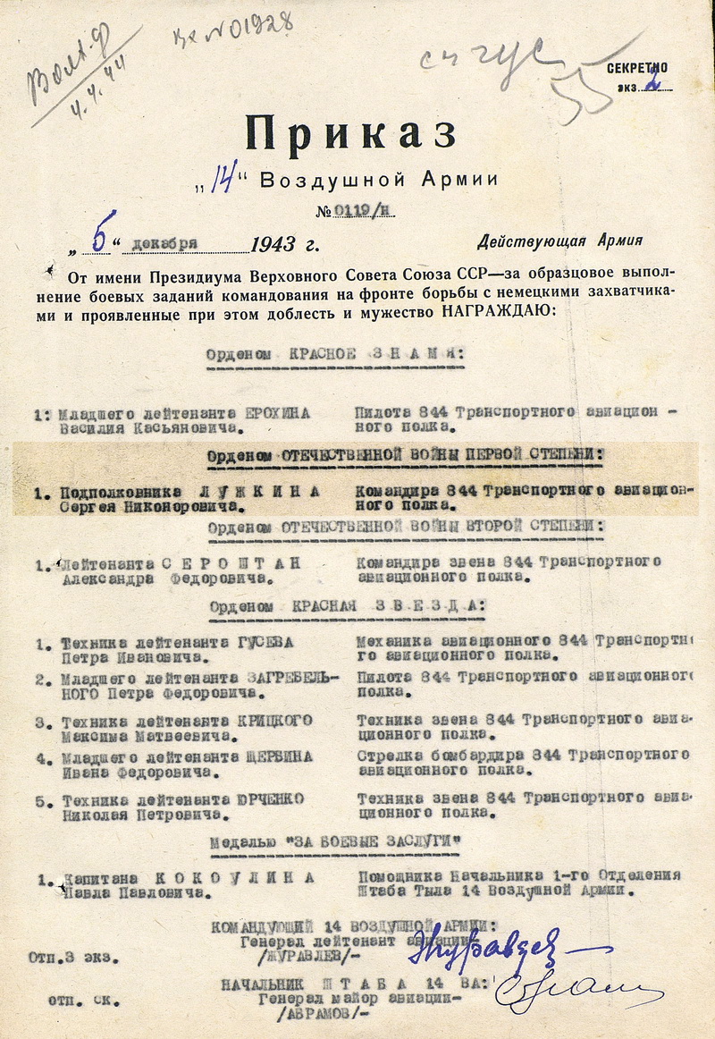 В декабре 1941 года - майор, командир 627-го ночного бомбардировочного авиационного полка (впоследствии 844-го отдельного транспортного полка).