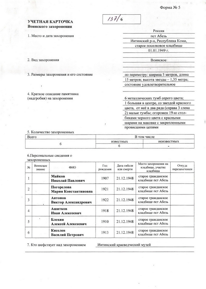 Людей было столько, что процессия тянулась от посёлка до кладбища (примерно 1 км). Похоронили со всеми воинскими почестями. На могилах были высаженные маленькие ёлочки, установлены деревянные пирамидки со звёздами. Сейчас всё это в заброшенном состоянии. Две или три могилы родственники перевезли на родину.