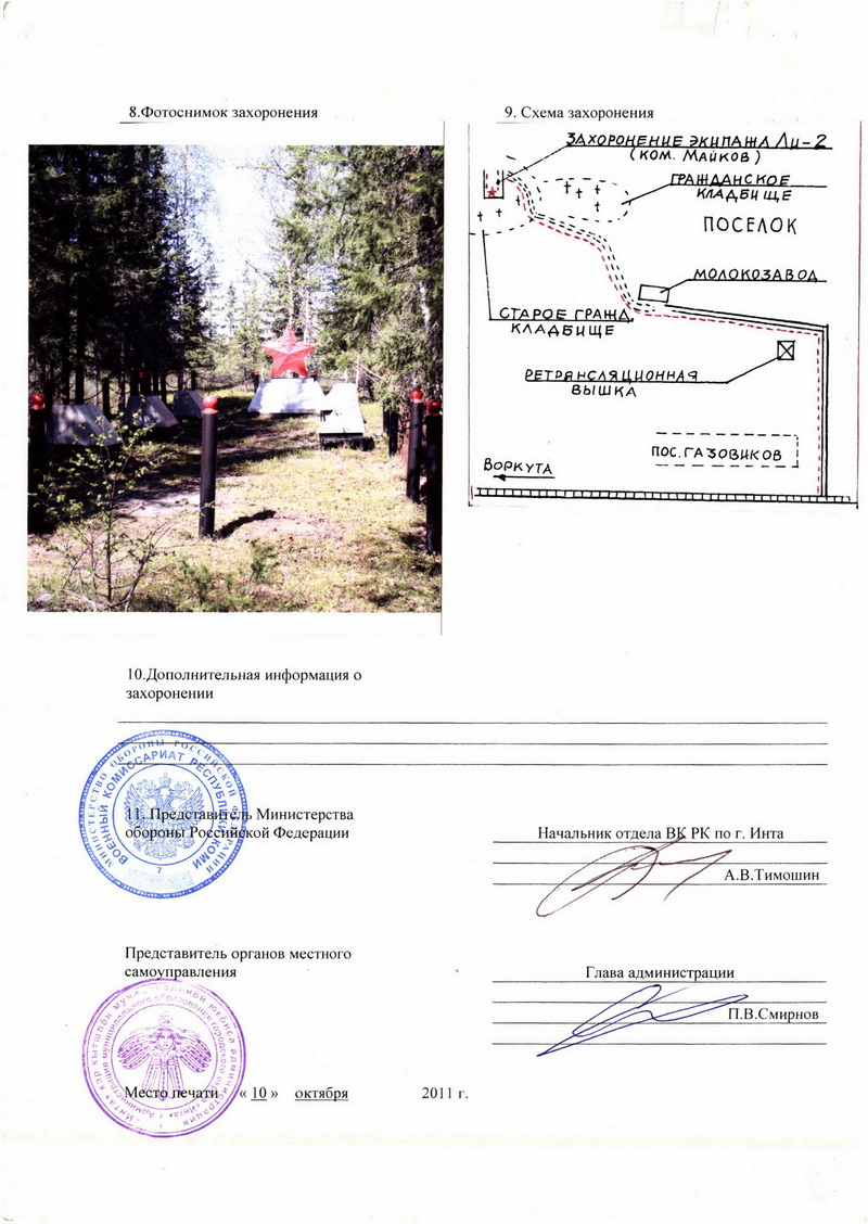 Это был последний полёт перед уходом экипажа в отпуск. Их искали в течение месяца, все кто мог принимал участие в поисках: железнодорожники, геологи, строители, лётчики, оленеводы. Упавший самолёт нашёл ненец оленевод Викула Хатанзейский. В связи с тем, что управление находилось в Абези, погибших было решено похоронить здесь. Прощание с экипажем проходило в театре, где был выставлен почётный караул. Похороны состоялись 1 января 1949 года. За всю историю Абези это были самые торжественные похороны. В этот день никто не работал.