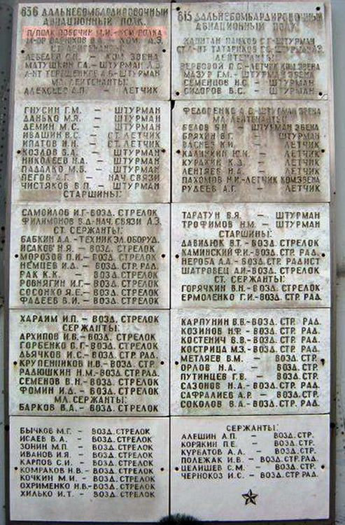 24 августа 1943 года командир 836 бап подполковник Побочин Михаил Иванович на самолёте Ил-4 (Дб-3) не вернулся с боевого задания (предположительно, в составе экипажа штурман полка, майор Хазахметов Латып 1906 г.р.; стрелок-радист, старший сержант Гороховский Петр Исакович 1920 г.р.; воздушный стрелок старший сержант Крутьев).