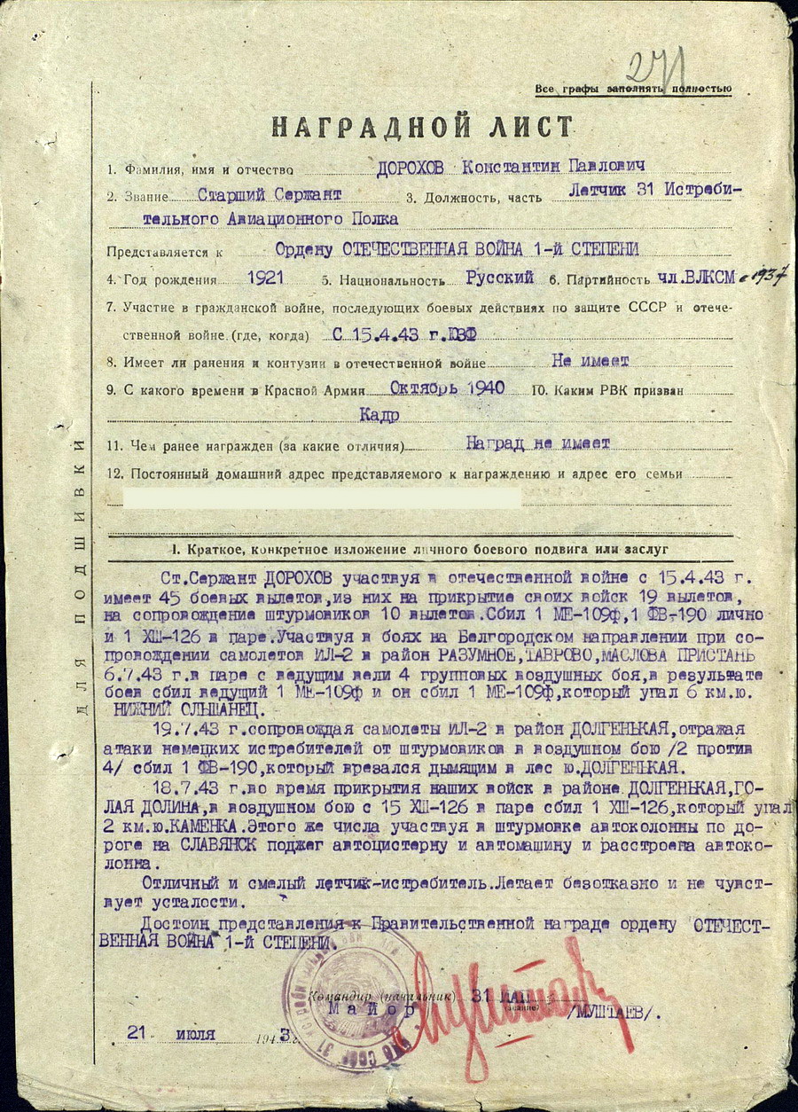 Погиб в воздушном бою 23 июля 1943 года - не вернулся с боевого задания в один день Казаковым А.Ф.
