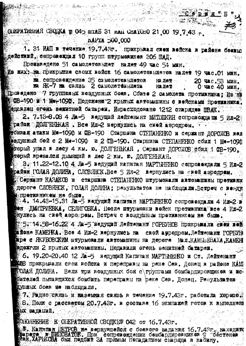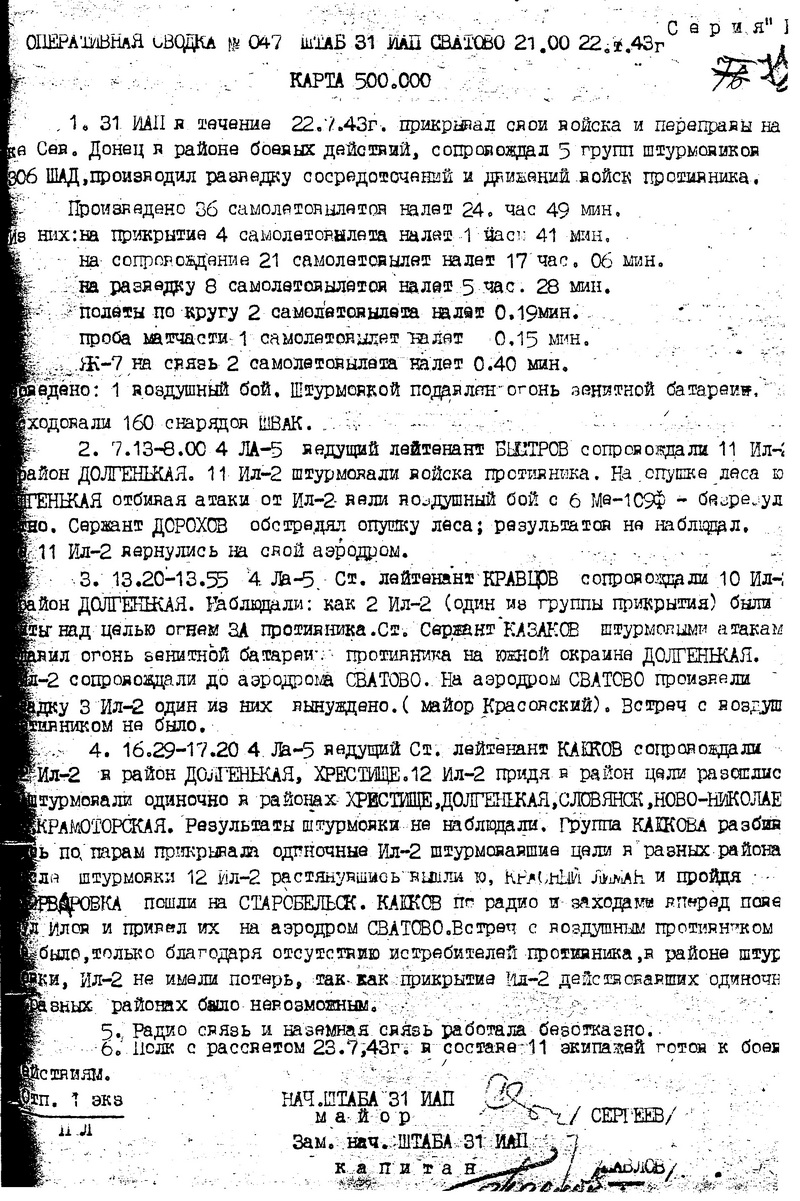С февраля 1943 - лётчик 31 иап 9 сак, сержант, старший сержант, младший лейтенант (10.07.1943).