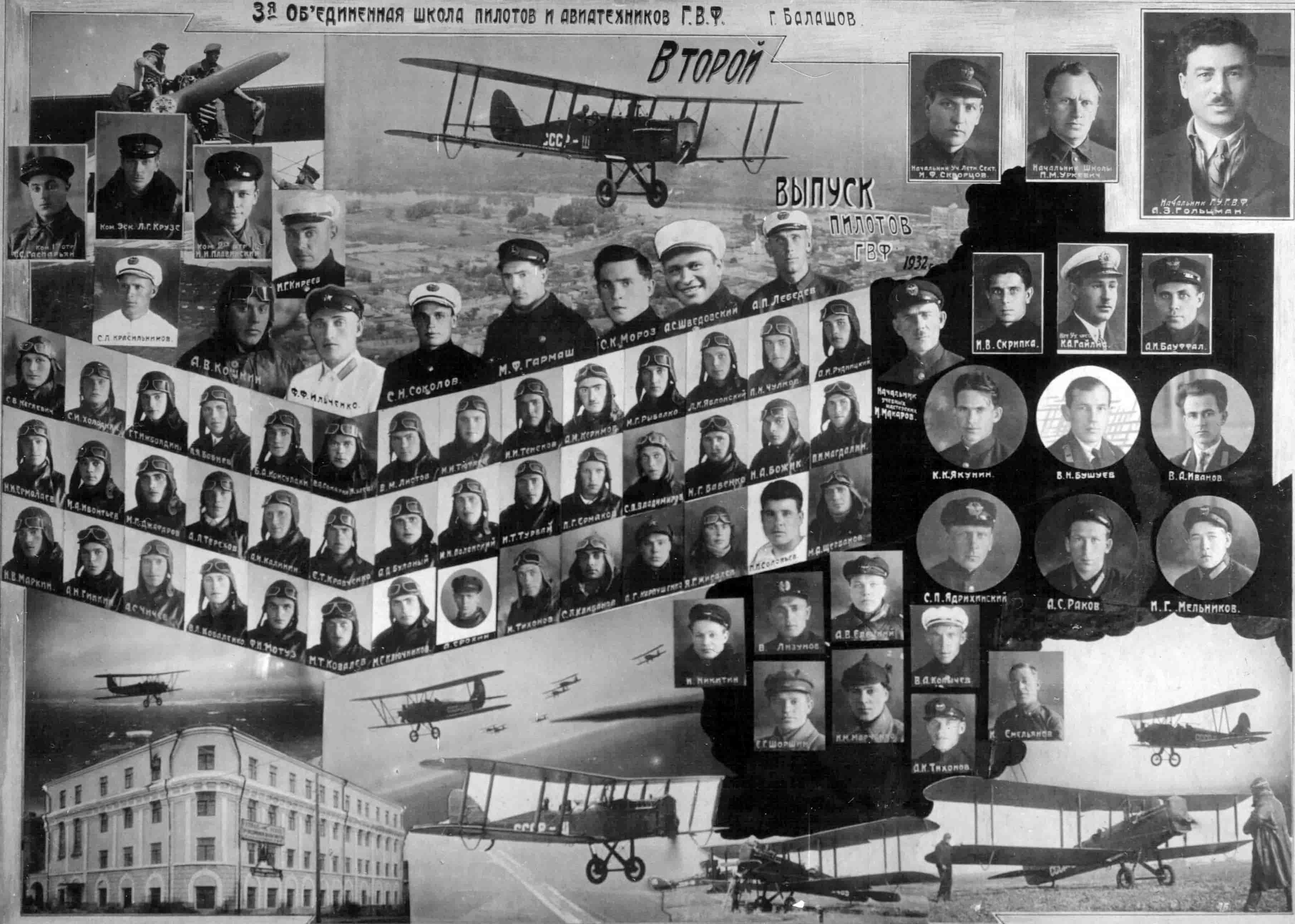 Групповая фотография выпуска Балашовской объединенной школы пилотов и авиационных техников ГВФ, выпуск 1932 года: