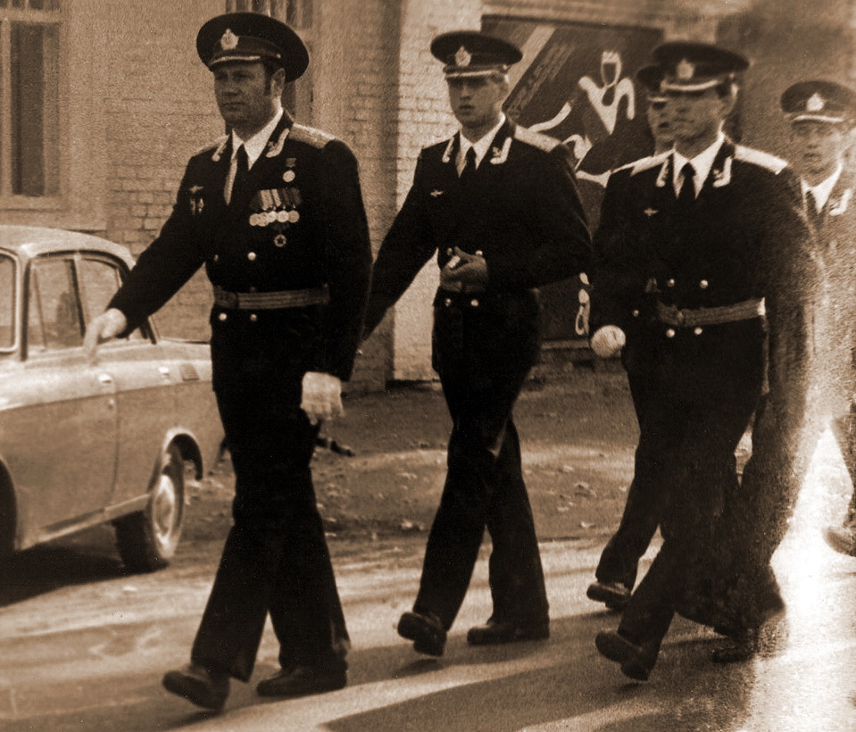 Хаустов В.Т. во главе колонны лейтенантов-моряков выпуска 1987 года. 17 октября, г. Борисоглебск
