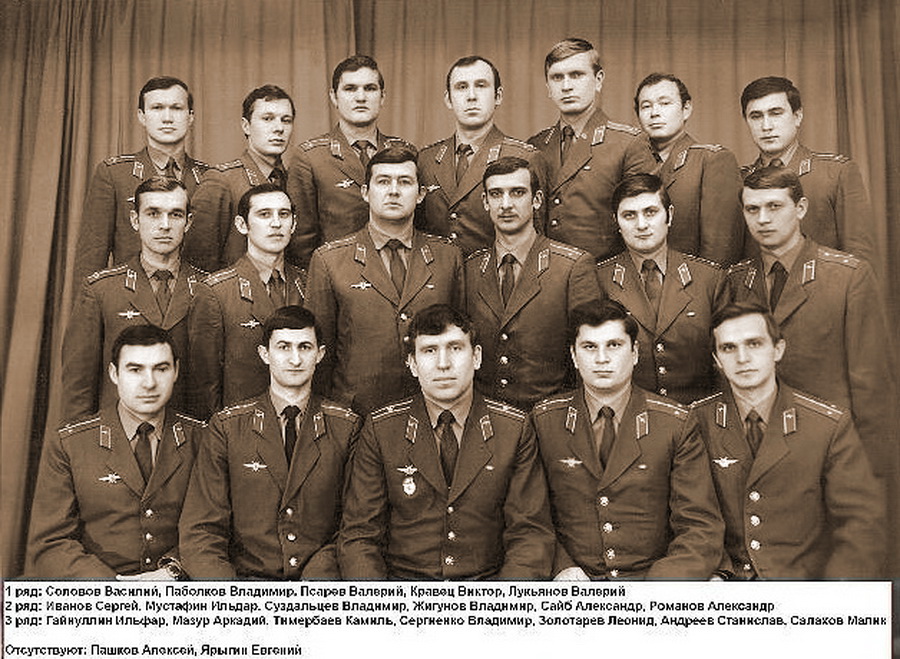 Аэродром Жердевка. Слева направо: Рублёв В.А. (1974 год выпуска), ... , Макеенков А.С. (КВВАУЛ-1974), Мазур А.Н., Охотин Е.