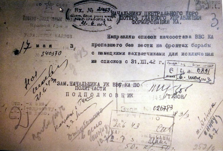 Младший лётчик 166-го разведывательного истребительного авиационного полка, младший лейтенант Карцевский Александр Дмитриевич погиб (пропал без вести) 31.12.1942.