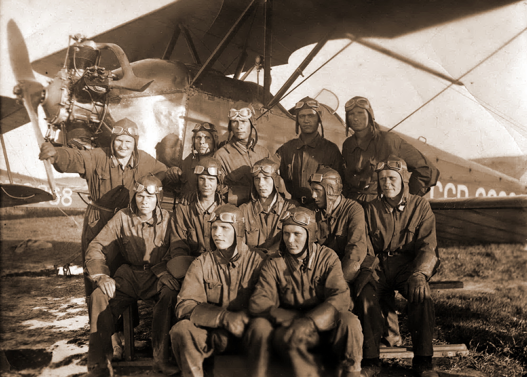Общая фотография курсантов на лётном поле у самолета У-2 (лето, вечер перед закатом солнца). Курсанты не подписаны, мой дед Федоров В.П. - сидит во втором ряду крайний справа (у крыла). Предположительно аэродром в посёлке Танцирей.