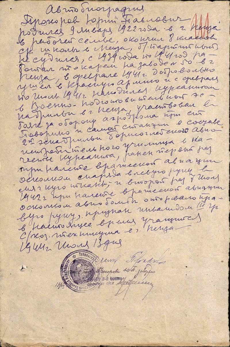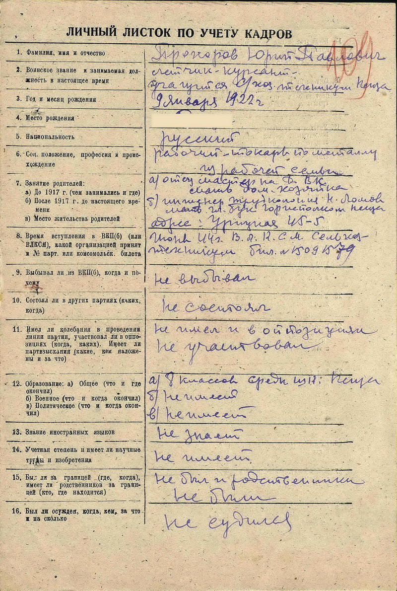 Прохоров Юрий Павлович родился 9 января 1922 года. По национальности русский.