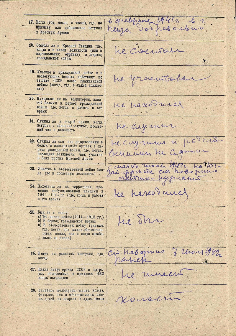 7 июля 1942 года при налёте вражеской авиации на железнодорожную станцию Поворино был ранен повторно: осколком авиабомбы оторвало правую руку. Признан инвалидом III группы.